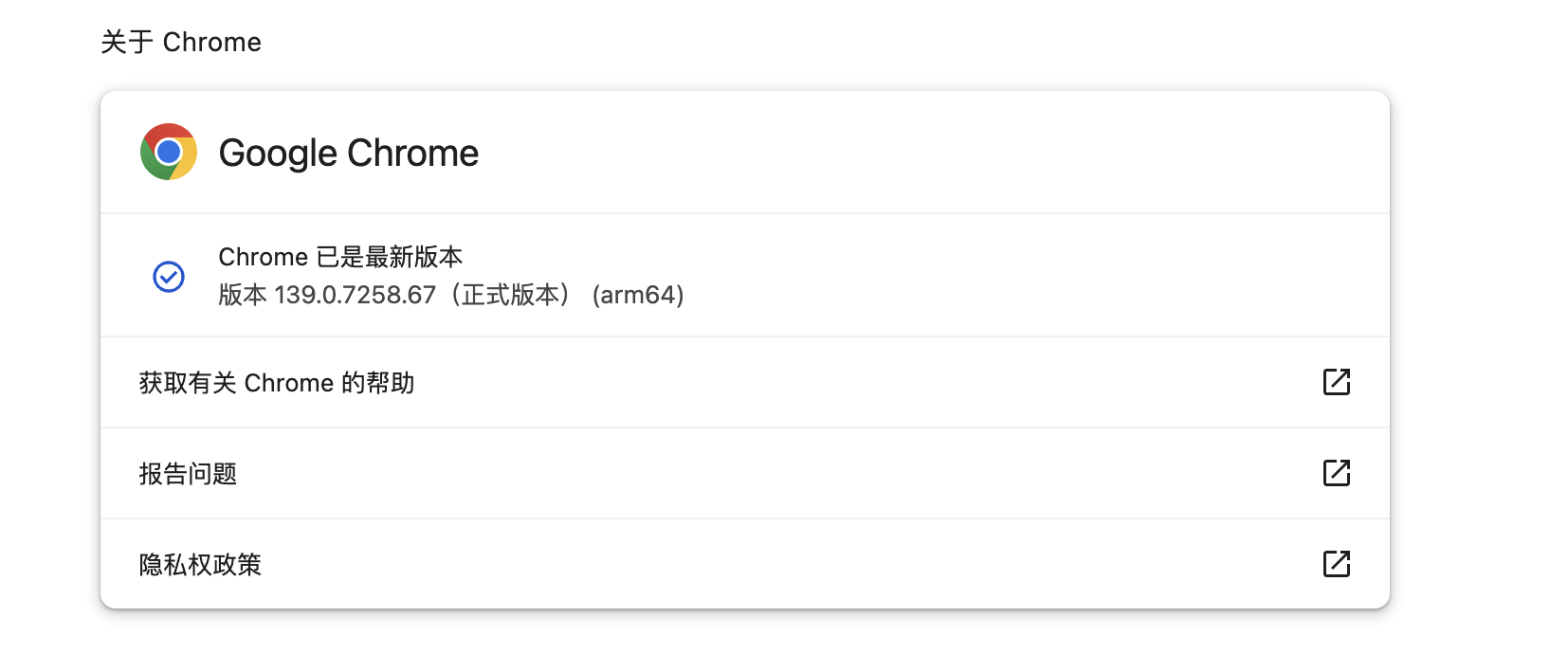 - 打开 chrome 浏览器,点击菜单->帮助->关于 Google Chrome,即可查看 chrome 版本号。